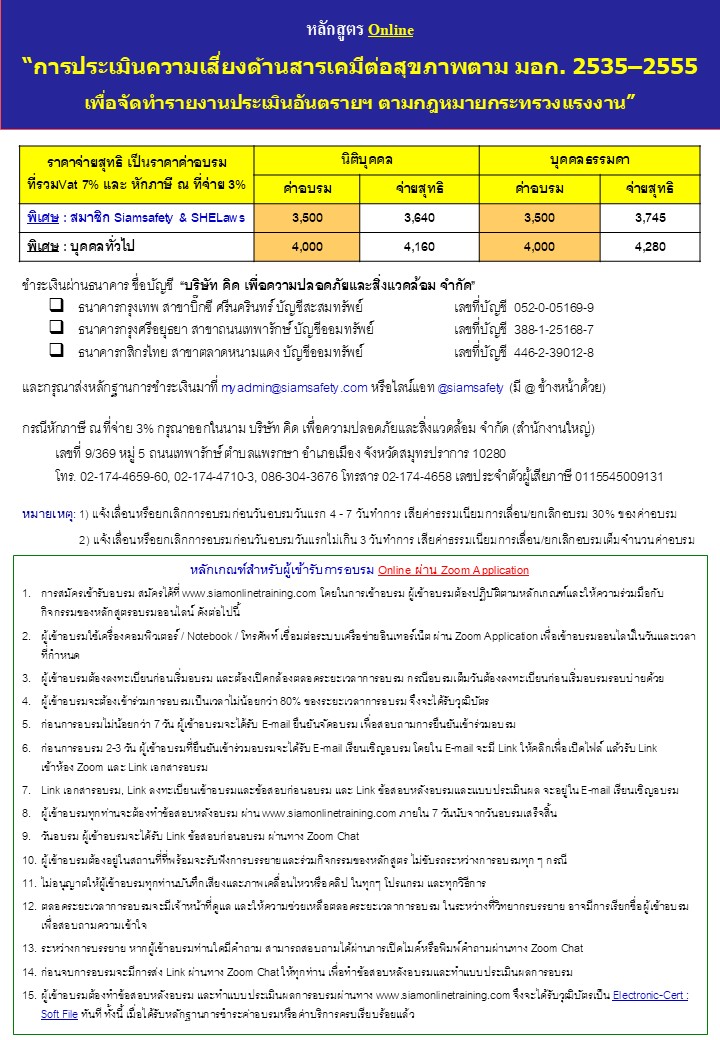 | ราคาจ่ายสุทธิ เป็นราคาค่าอบรม ที่รวมVat 7% และ หักภาษี ณ ที่จ่าย 3% |